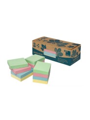 Selbstklebende Haftnotizen · Mit Bleistift, Kugelschreiber, Füllhalter, Tintenroller und Fasermaler beschriftbar · Nach Gebrauch rückstandslos wieder ablösbar · 12 Blöck à 100 Blatt · Papiergewicht 70g/qm · nachhaltig aus Recyclingpapier